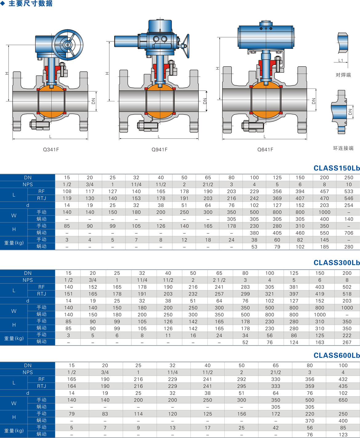 ⑦可靠阀座密封结构: 公司多年来的球阀制造经验与国际先进技术的结合而设计的双线密封结构,可自然泄压阀座,能保证高、低压和真空状态下的可靠密封。当介质压力运行在低压区时,阀座密封圈与球体接触面积较小,故有较大的密封比压,确保阀座可靠密封,当介质压力运行在较高位时,阀座密封圈与球体的接触面积增大,故阀座密封圈能承受较大的介质推力而不会损坏。对于工作压力很低的球阀,考虑到介质压力不能确保阀座的可靠密封,而预紧力长期使用后会衰退,故对于低压,超低压或真空工况用球阀,采用板簧加载的阀座密封结构,确保球阀长期可靠的密封。中、高温球阀的阀座密封结构,采用对位聚苯(PPL)作为密封圈可用于250°℃的温度,而采用金属密封耐高温组合材料结构设计的球阀可用于更高的温度。