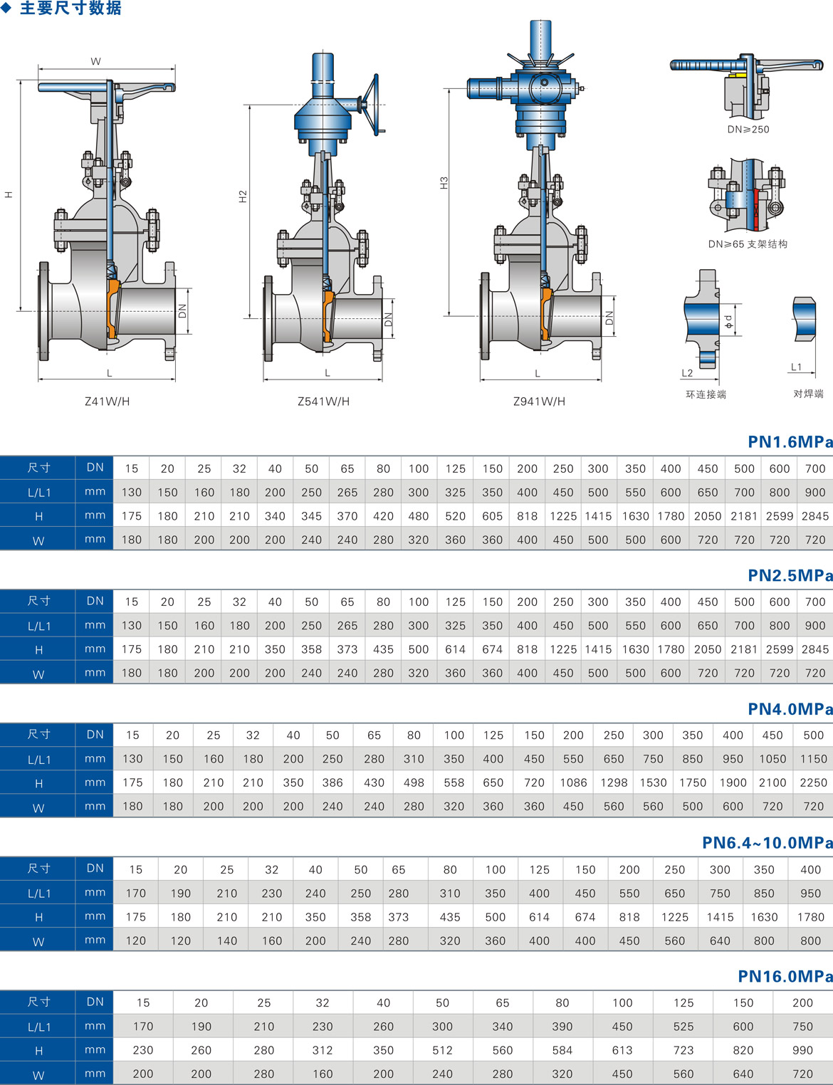 ①阀体和阀盖连接形式:PN10~ PN100采用栓接阀盖;PN160及以上采用自压密封式阀盖。