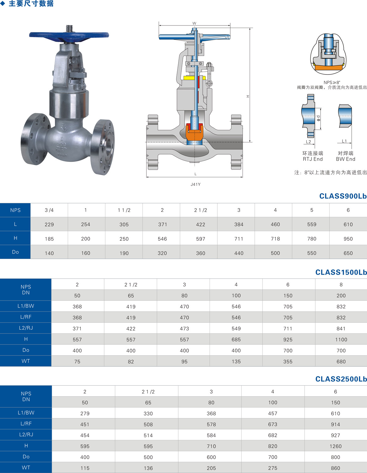 ①设计制造:铸钢截止阀按照API 623、BS1873、 ASME B16.34