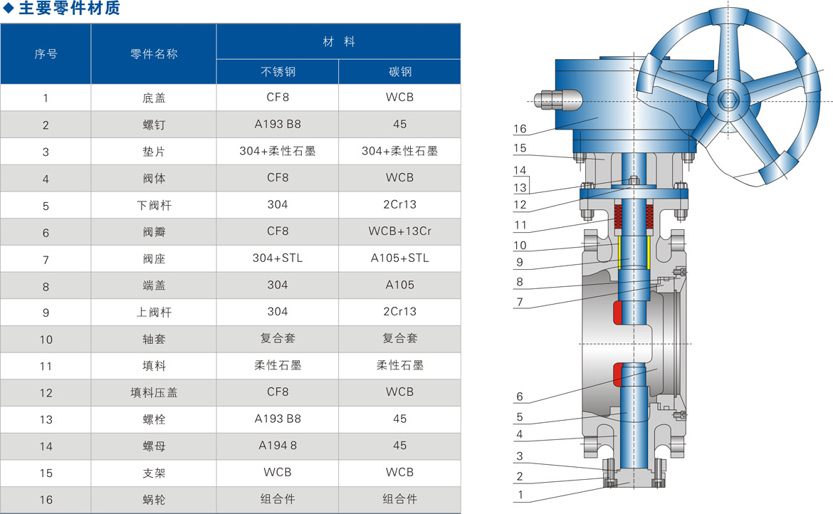 ①启闭件结构:启闭件采用类似蝶阀蝶板的板式结构,而密封面采用的是球体截面的球面结构,同时具备蝶阀和球阀的两种特性,也同时具备两种阀门的优点。