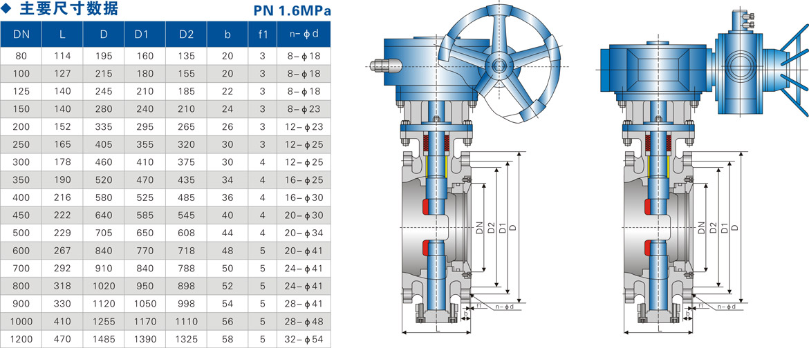 4.其主体结构类似蝶阀,具有蝶阀的结构短、体积小的特点,因而可制造大口径、特大口径、超大口径的阀门;