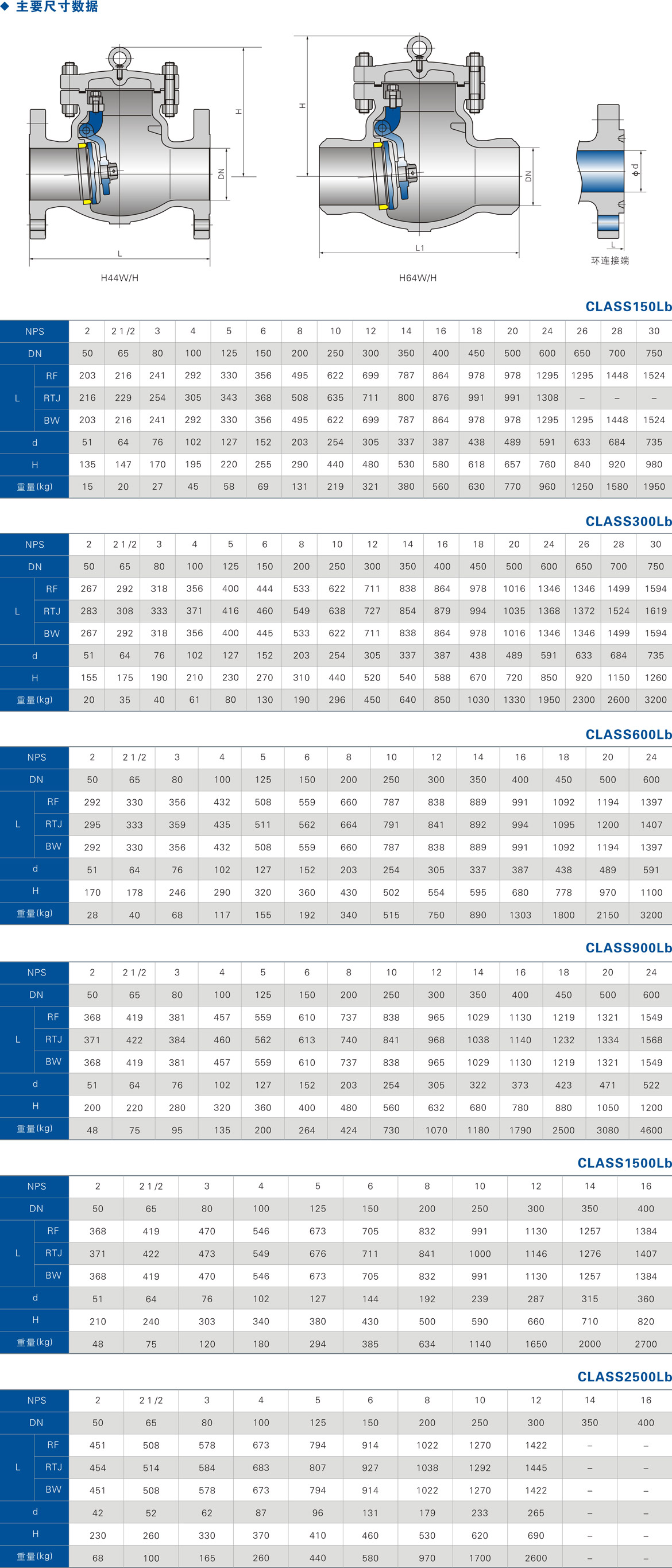 ③阀盖中道垫片常规形式:Class150止回阀采用不锈钢石墨复合垫片;C|ass300止回阀采用不锈钢石墨缠绕垫片; Class600止回阀可用不锈钢石墨缠绕垫片也可采用金属环垫片;Class900~Class2500止回阀采用自压密封金属环。